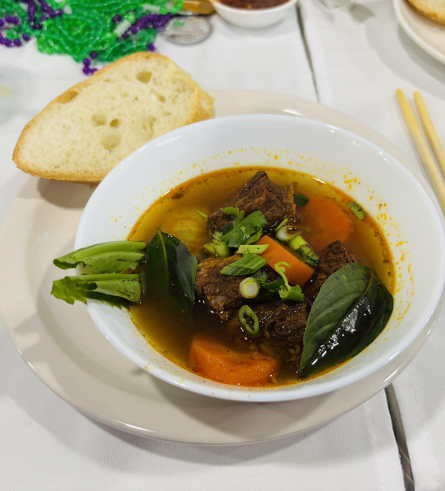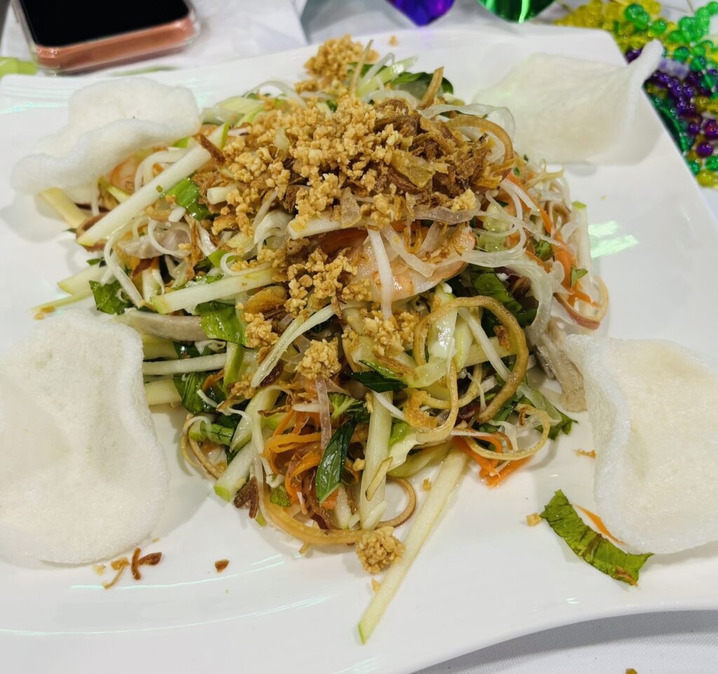 We celebrated our annual Fête du Mardi Gras at Pho 80 Restaurant in North Naples. Chef/Owner Quyen treated us to a delicious, seven-course dinner that was served family style. The theme of the event was the 1972 Academy Award winning film, “Cabaret”, with everyone dressed in lively costumes. As always, it was a fun soirée.
